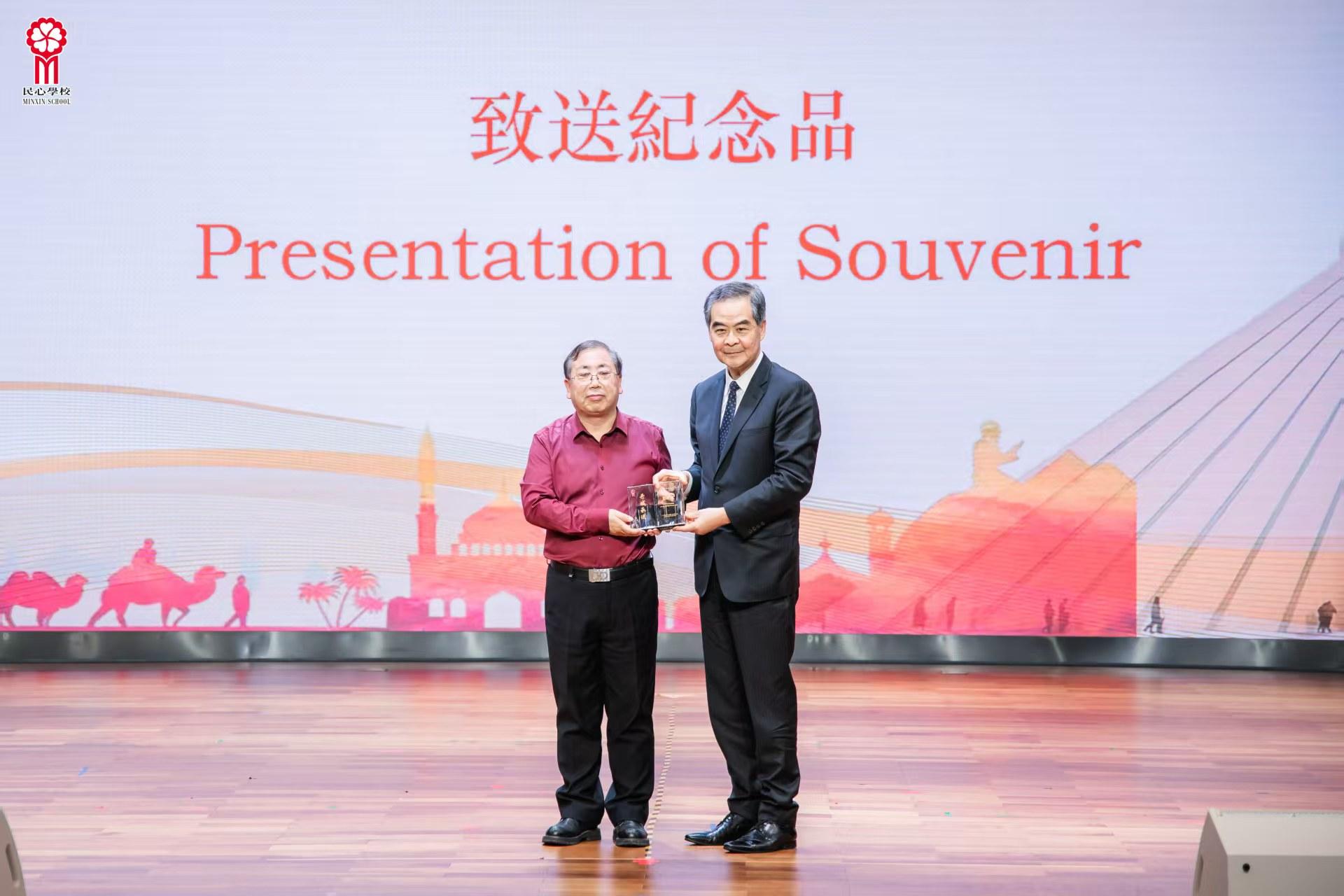 在梁振英主席陪同下,冀开运教授步入学校大会堂。梁振英主席首先致开幕辞,对教授来访表示热烈欢迎,勉励师生拓宽国际视野、增进对多元文明的认知。