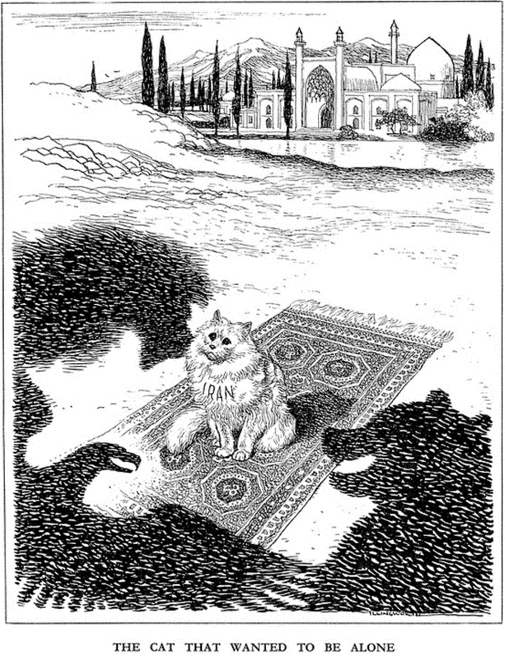 ● 漫画-英国狮、俄国熊和波斯猫,来源:网络