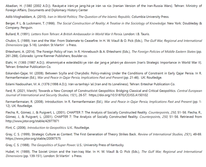本文特别关注了伊朗当代历史中三个关键时刻:19世纪俄罗斯同伊朗的战争、1941年盟军进驻伊朗以及20世纪80年代的两伊战争,文章将地缘政治和社会建构主义理论进行了结合,作者认为在过去两个世纪中这三场重要的冲突使伊朗构建了一种主体间性(对他人意图的判断和推测),正是这种主体间性使伊朗人在对外接触的过程中时刻感受到威胁与“孤独”,伊朗的地理位置天然使这个国家成为大国关注与争夺的核心,而屡次发生的外国入侵和强权干预更使伊朗人感到无助,这深刻的影响了伊朗的对外政策设计。文章认为地理位置和自然原因并不是伊朗在国际交往中孤独感的决定性来源,其并非不可避免,这种“孤独”更多来自于社会现实的建构,即政治强国对伊朗进行干预并迫使其成为不同力量间的缓冲区。